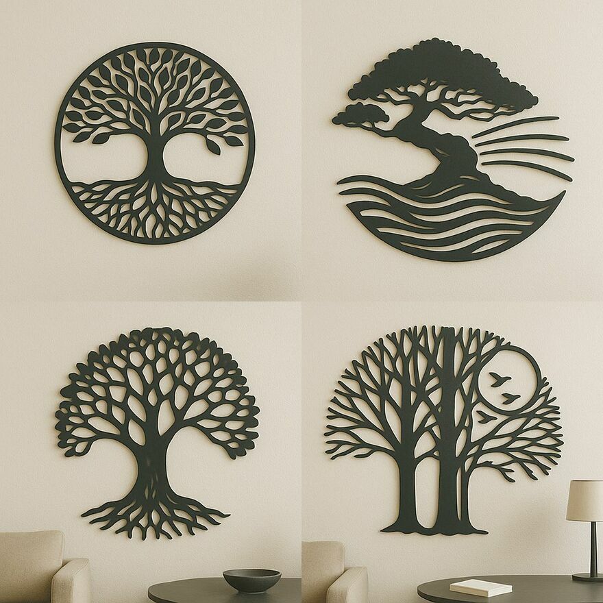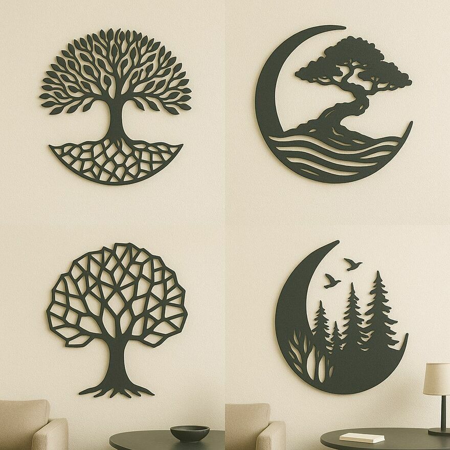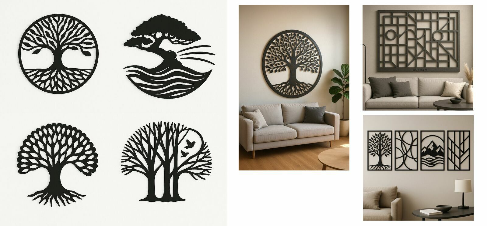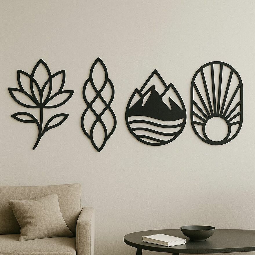 Piękne dekoracje ścienne wykonane z blachy metalu i malowane proszkowo na dowolny kolor z palety RAL. Bazowy kolor to czarny strukturalnyDo ściany można przykleić klejem uniwersalnym lub zawiesić na małym wkręcie, pełna dowolność.