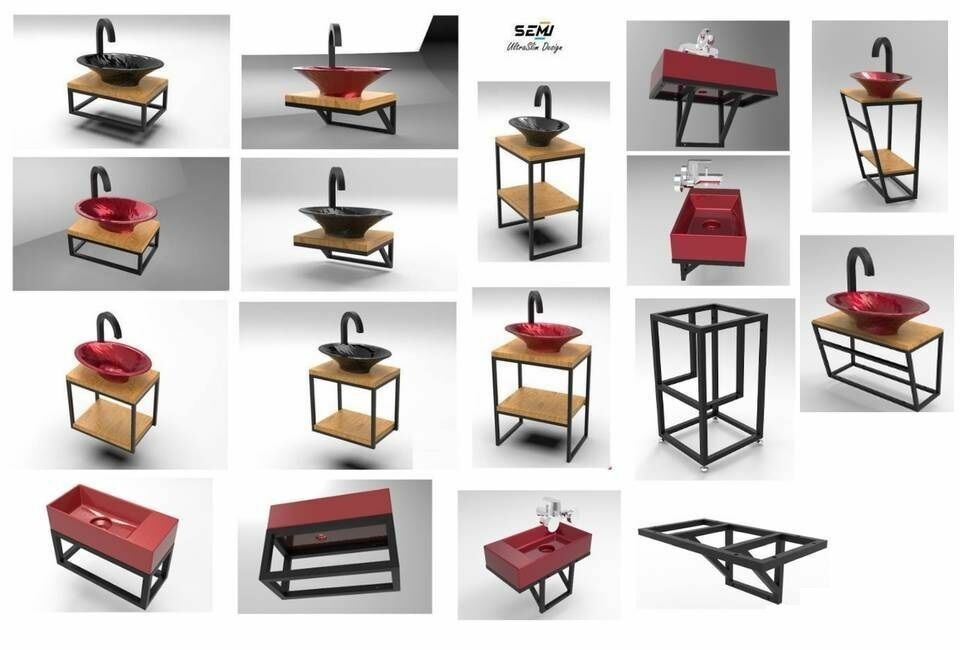 - Przedmiot zakupu to sam stelaż lakierowany strukturalny. Zdjęcia z blatami, kranem i umywalką to zdjęcia przykładowego wyposażenia stelaża.