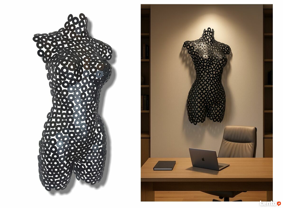 Piękna metalowa rzeźba przestrzenna 3D o kształcie kobiety.Mega duża rzeźba - wysokość aż 80cm !