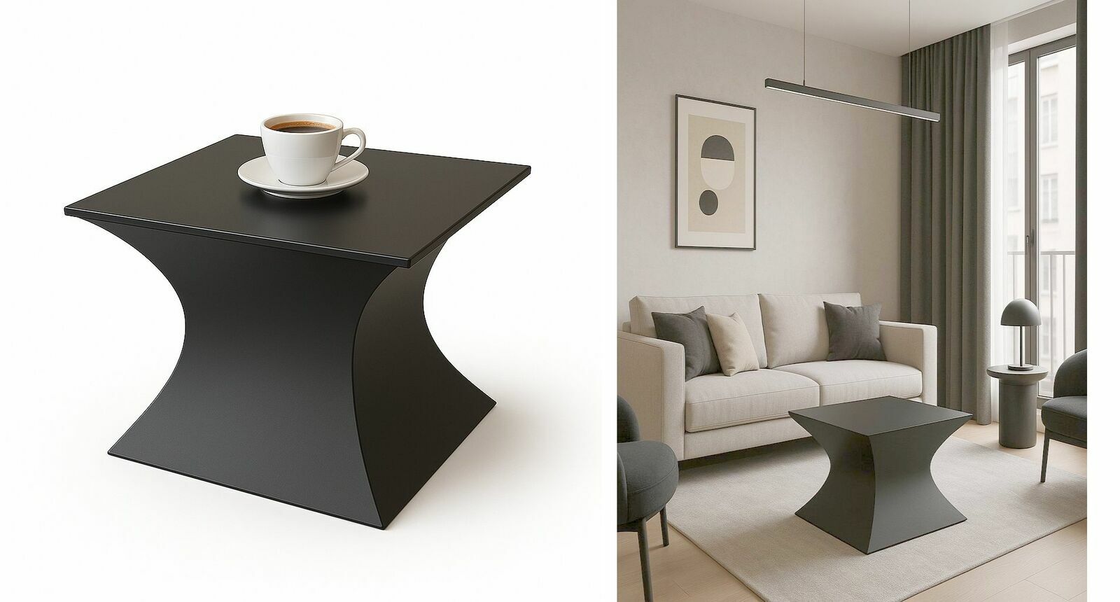 Ultranowoczesny stolik kawowy bryła 3Djedyny w swoim rodzaju.